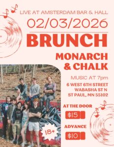 Monarch is a Twin Cities-based five piece rock band. With influences ranging from the heavy-psychedelia of the 60s and 70s, to the soothing lo-fi aesthetics of modern indie music. Whether you’re looking for some hard rocking head-bangers or some danceable funky grooves, you’ll find them at a Monarch show.
