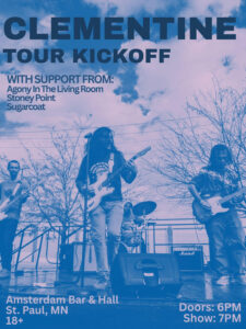 Clementine (Rockford, IL emo) kicks off their That’s Too Long Tour tour at Amsterdam Bar & Hall on March 5th. With support from Agony In The Living Room (St. Paul alt-rock), Stoney Point (Minneapolis shoegaze), and Sugarcoat (Twin Cities emo). Come send Clementine off with a bang!