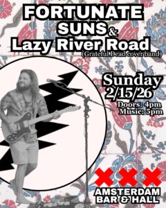 Fortunate Suns and Lazy River Road are joining forces for a very special Twin Cities Sunday service at the Amsterdam Bar & Hall — bringing original psych-blues-funk grooves and timeless Grateful Dead energy together on one stage.