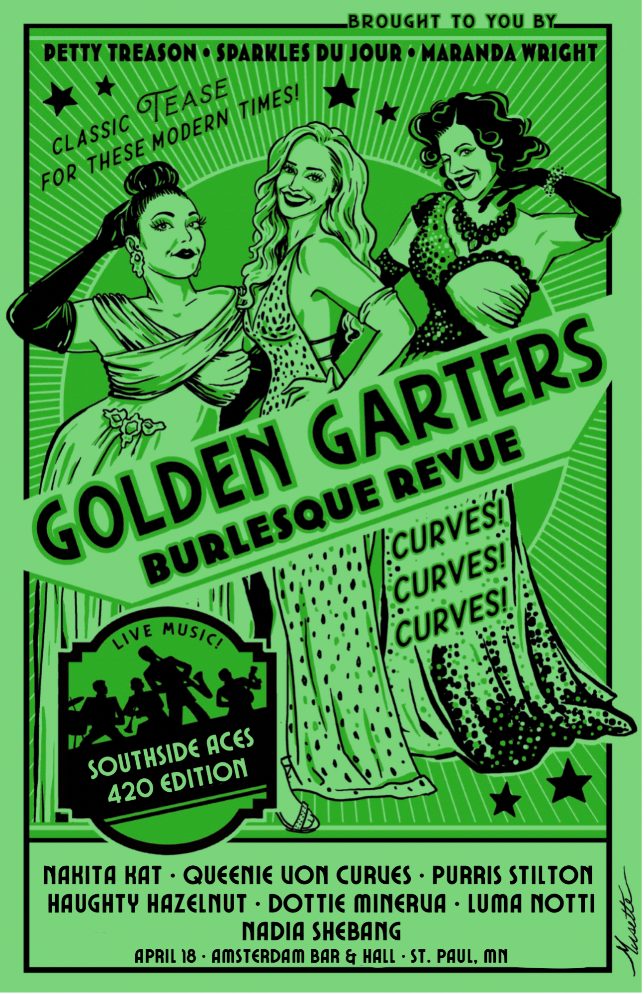 Let Golden Garters Burlesque Revue toke you back to the Prohibition era where the jazz was hot, the gin was illegal, and the pleasures were strictly forbidden. Leave your inhibitions at the door… this joint’s wide open.