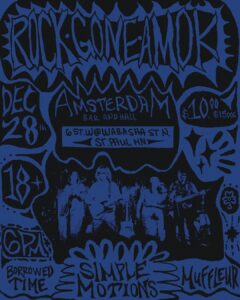 Rock Gone Amok, split ticket showcase of raw local talent from St. Cloud. Playing a live mix of covers you’ve longed for with original music to fulfill that heart shaped hole for indie rock sleaze. This line up you won’t wanna miss, almost like chicken soup for the punk soul.