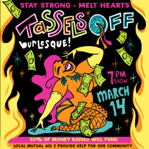 Welcome to GLAMOUR & COMEDIC HI-JINKS, y’all! We pinky swear to a wild night out with a bevy of bodacious beauties and hilarious humans at our Tassels Off Annual FUN-draiser. Sit down and enjoy the show while giving a little love, because 20% of ticket sales will fund local mutual aid to provide for our community. We got you MN, STAY STRONG – MELT HEARTS.