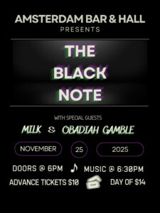 Come and see The Black Note on November 25th to experience a fantastic and unique lineup at The Amsterdam Bar and Hall. After a year together, they are putting on their first headlining concert with an original sound. Be prepared for a thrilling night, perfect for anybody who is looking to find a groove in the music!